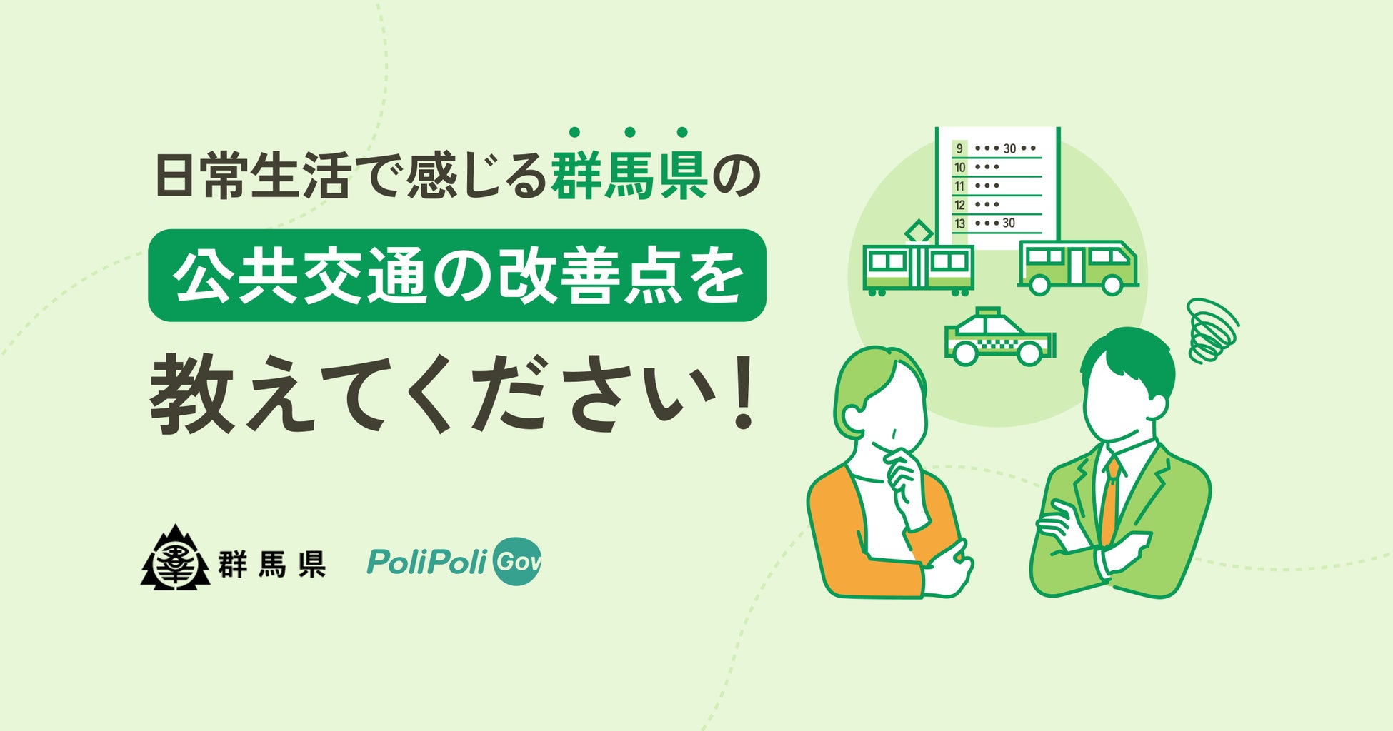 「日常生活で感じる群馬県の公共交通の改善点を教えてください!」をテーマにコメント募集