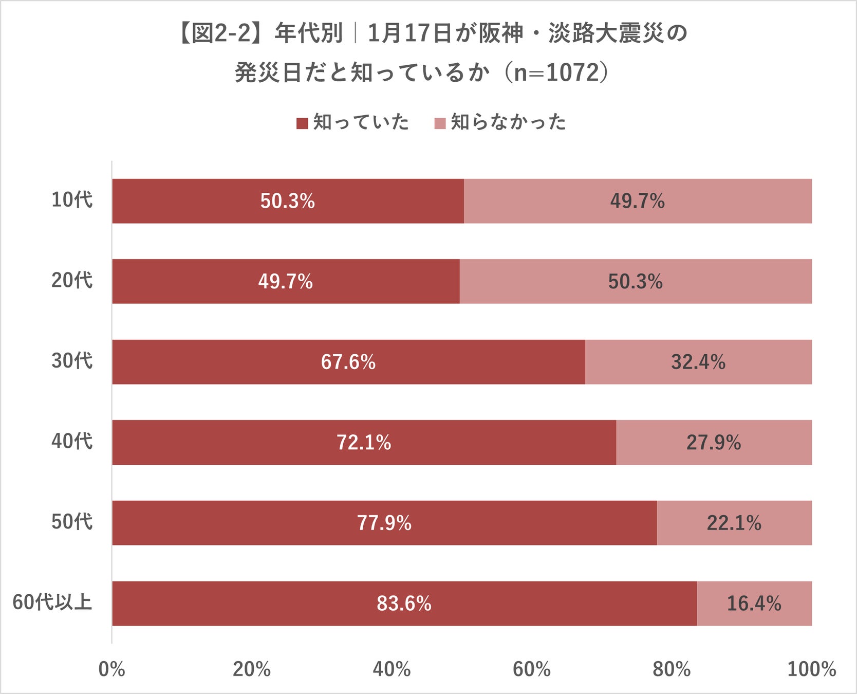 阪神・淡路大震災が起きた日、3人に1人「知らない」 ~『ボランティア元年』の認識も3割に届かず、若年層で認知が低い傾向~