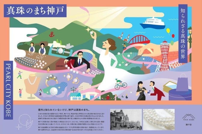 PRスペース内に、なぜ神戸が真珠のまちなのかを紐解くパネルを掲示し、神戸が世界屈指の真珠加工地として歩んだ歴史を紹介します。