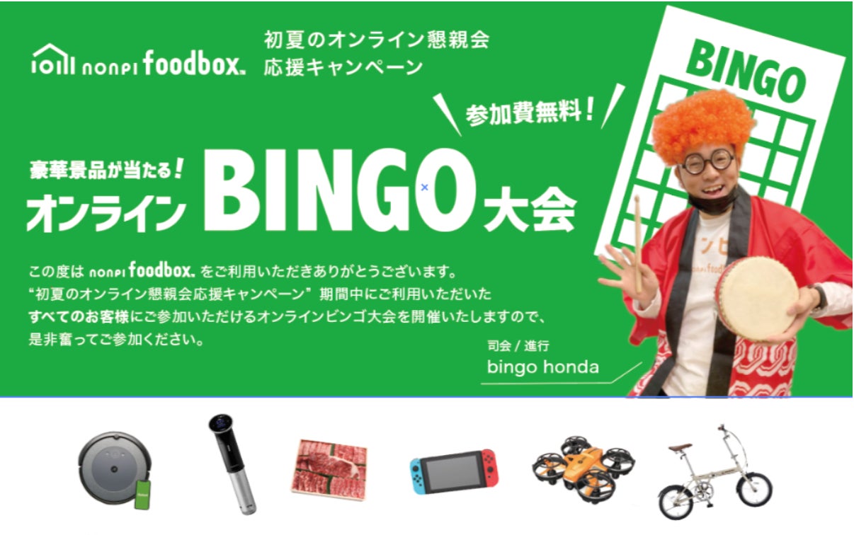 ノンピ、豪華景品が当たる『初夏のオンラインBINGO大会』開催決定!nonpi foodbox™を注文して高級家電や特選肉をゲットしよう。