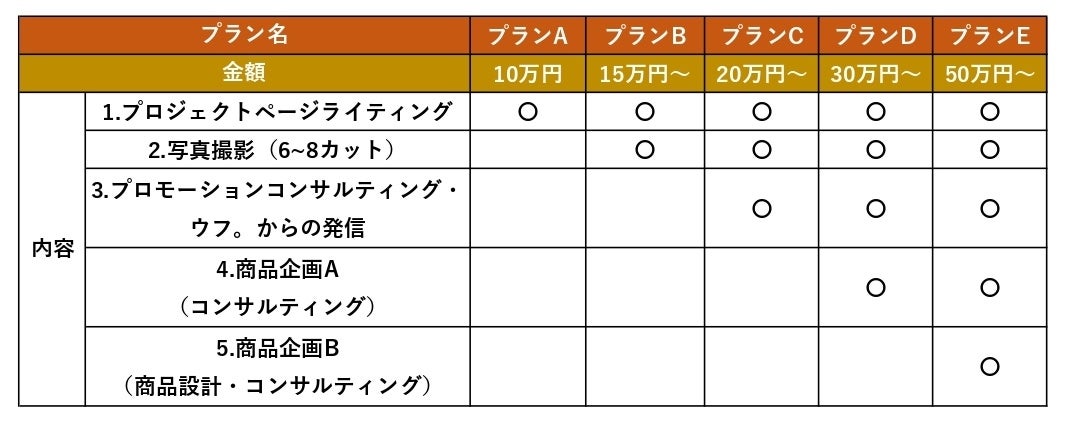 ■プロジェクト実行者向け「ウフ。」が支援する「特別プラン」概要