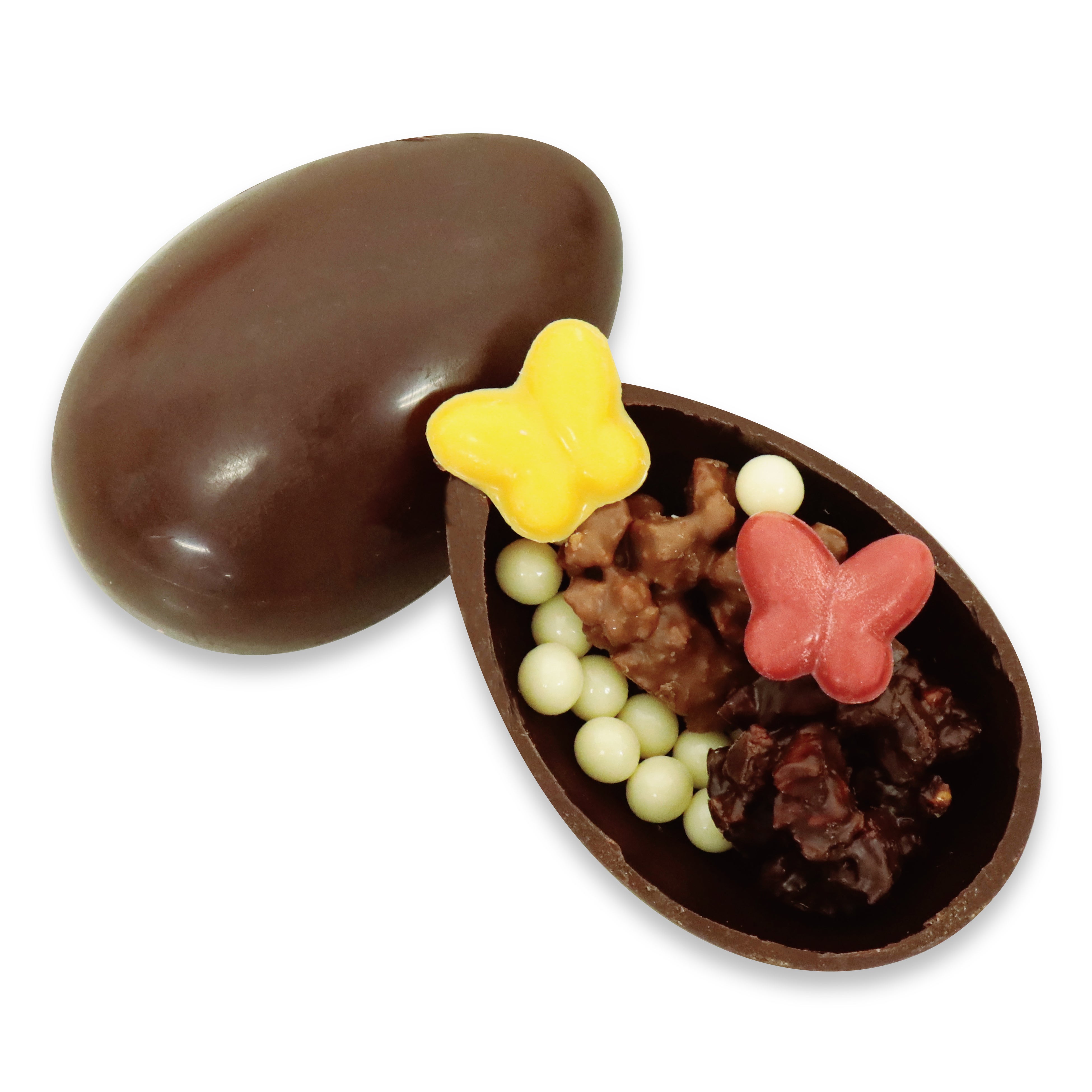 卵型のショコラの中に様々な種類のチョコレートが入った楽しい仕様に。