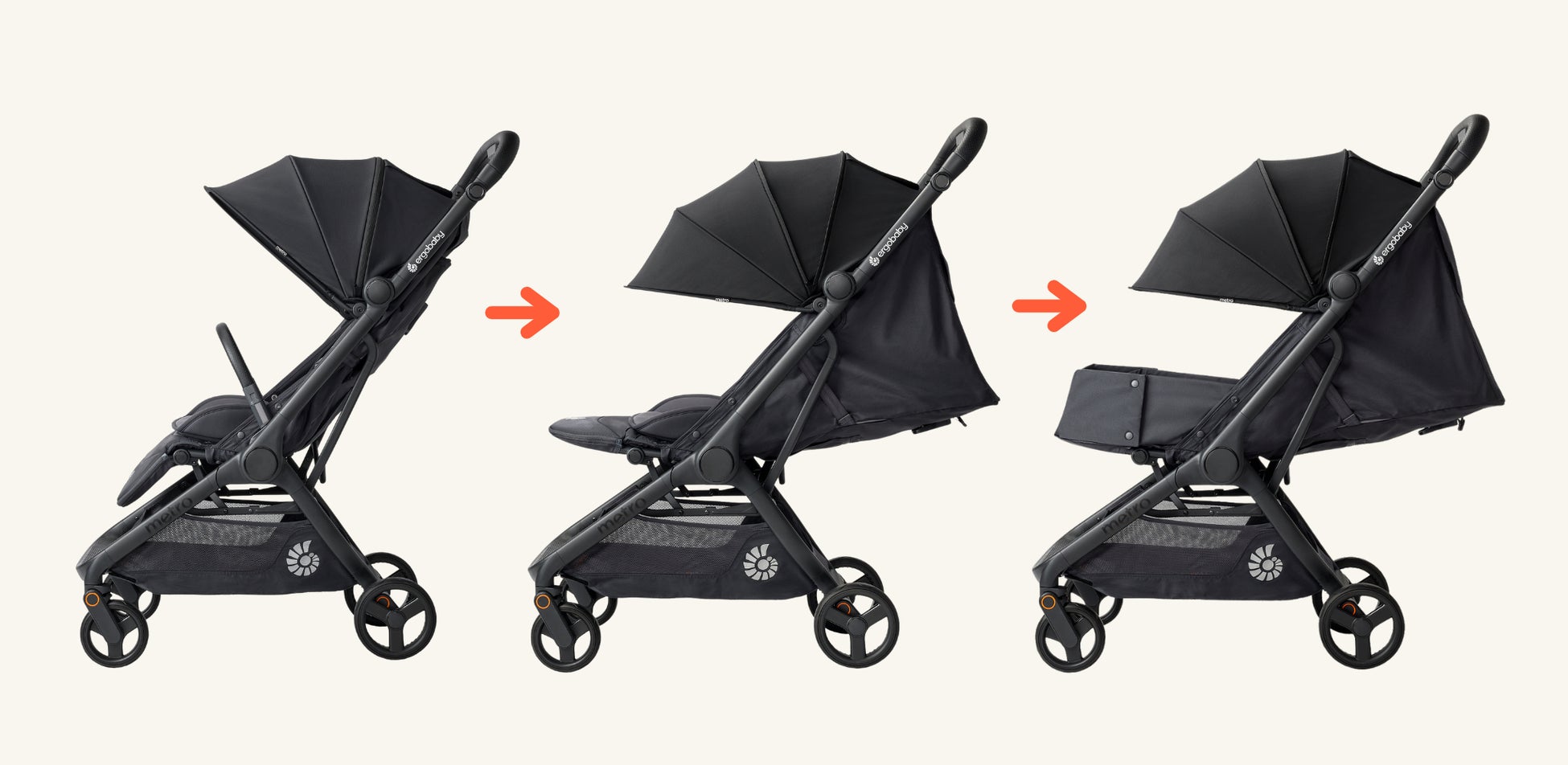 これまでのMetroシリーズでご好評いただいていたシートの構造や走行性はそのまま、ボタンを押すだけで折りたためるセミオート機能を搭載。片手で立ったまま、スマートに折りたためるようになりました。また、抱っこひもやバウンサーでも人気のベージュカラーと、ライフスタイルに合わせやすいブラックをラインナップしています。“ベビーカーを使う日が待ち遠しくなる”使い心地とスタイルを両立した一台です。