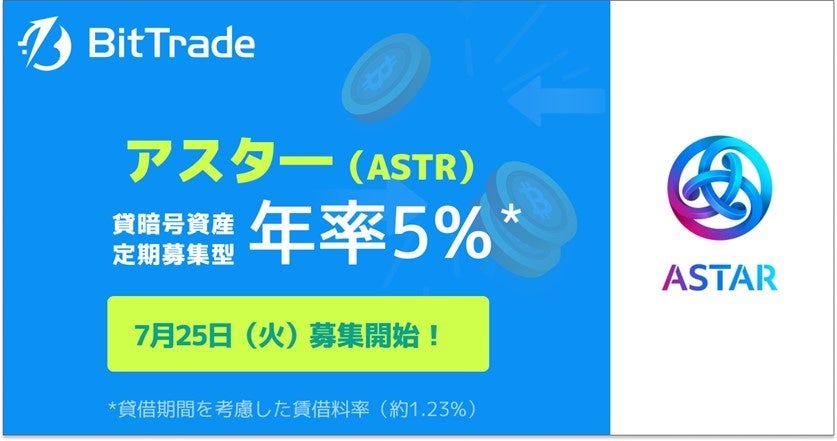 取扱い銘柄数国内NO.1*ビットトレード、【アスター(ASTR)貸して増やす・貸暗号資産】定期募集のお知らせ