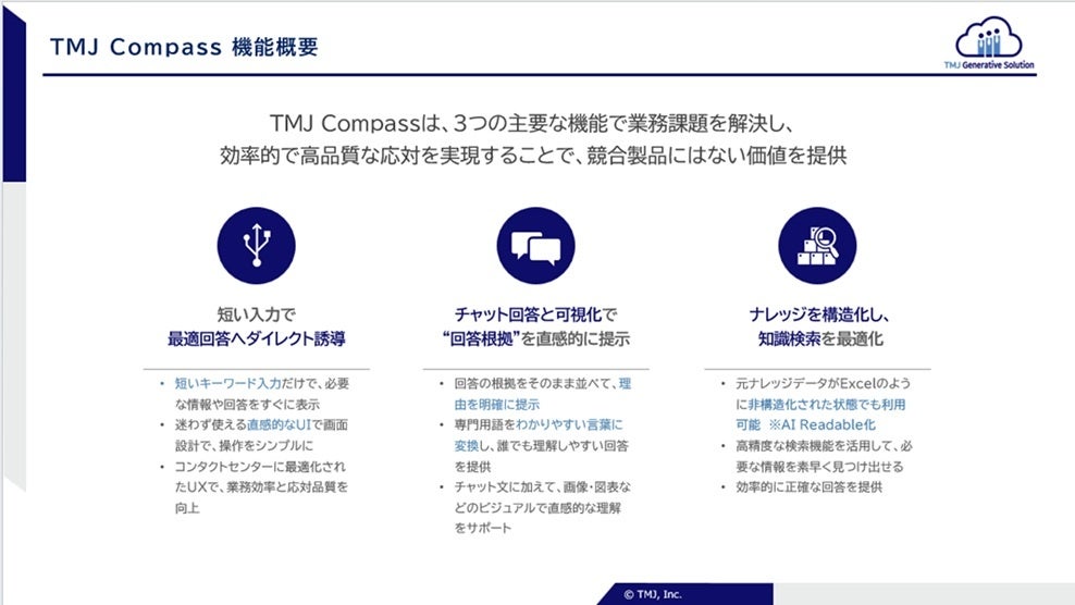 高度なナレッジツール「TMJ Compass」とAIロールプレイトレーニングツール「TMJ AI Roleplay」を4月14日より提供開始