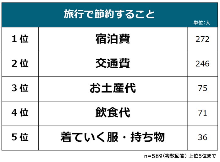 【旅行でお金をかけること・節約することランキング】男女589人アンケート調査