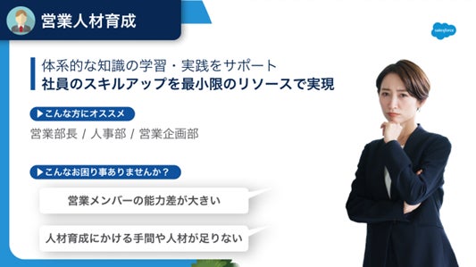 株式会社セールスフォース・ジャパン(代表取締役会長兼社長 小出 伸一、以下 Salesforce)は、中小企業のビジネスにおける典型的な課題の提示により、個々の企業が抱える潜在的な課題を顕在化し、解決へ導くための「Salesforce 中小企業向け DXお悩み解決パック」を本日より提供開始しました。