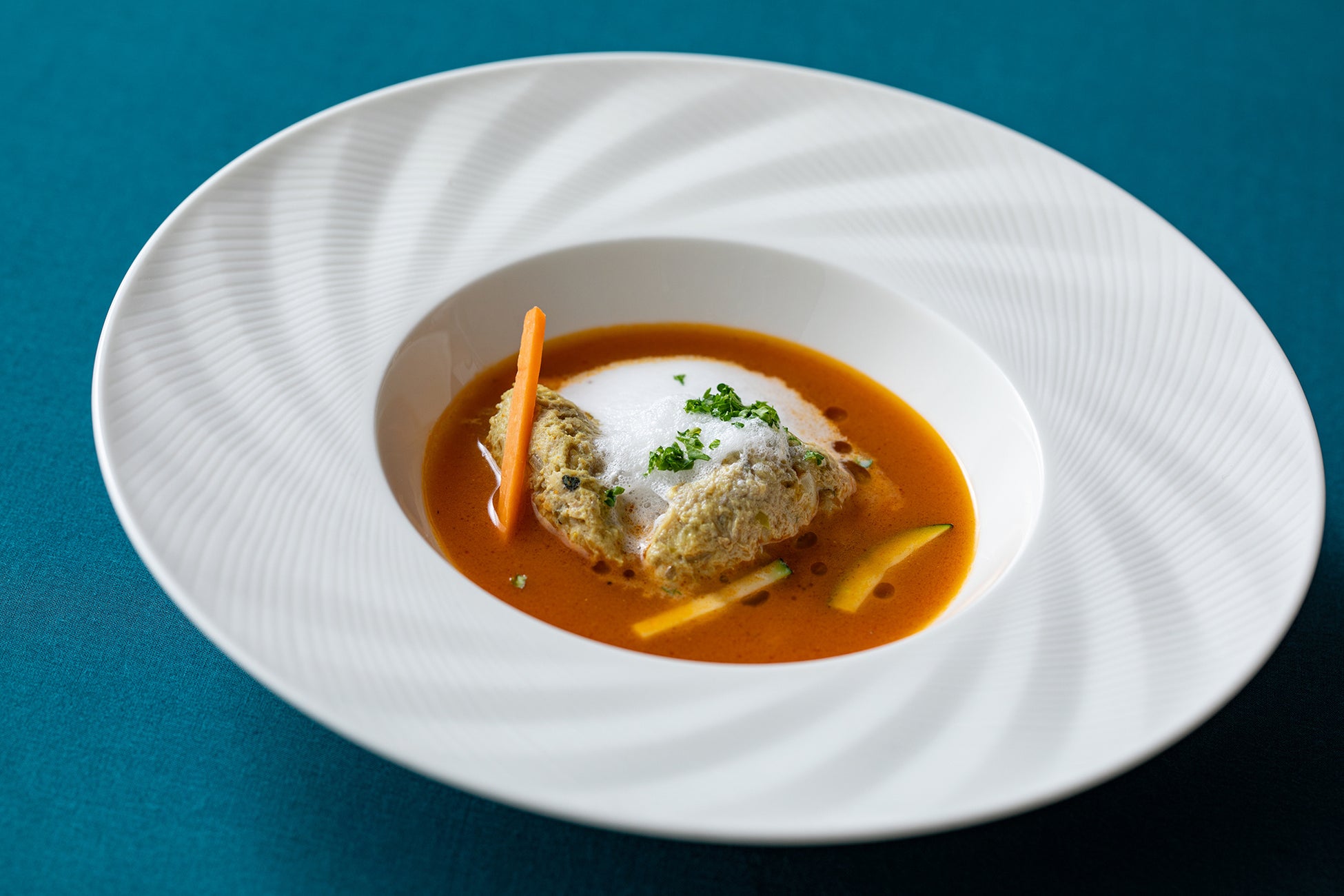 秋刀魚のクネルを浮かべた スープ ド ポワソン