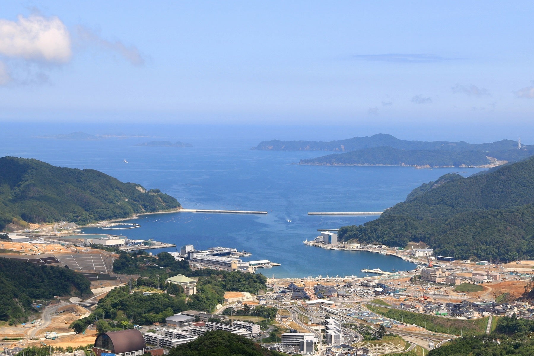 女川町は、宮城県の東、牡鹿半島基部に位置する港町。東日本大震災により被災した三陸地域に創設された「三陸復興国立公園」地域に指定されています。山地と海に囲まれ、山々には希少な山野草が多く生息し、リアス式海岸が形成する天然の良港では、昔から、ホヤやカキ、ホタテガイ、ギンザケなどの養殖が盛んです。
