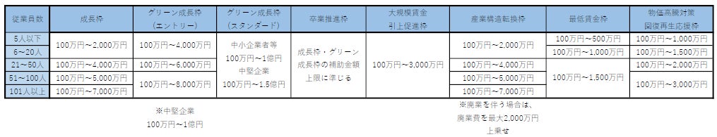 補助枠・補助率は企業規模や従業員数で異なりますが、補助額は最大1.5億円(サプライチェーン強靭化枠除く)、補助率は最大3/4です。