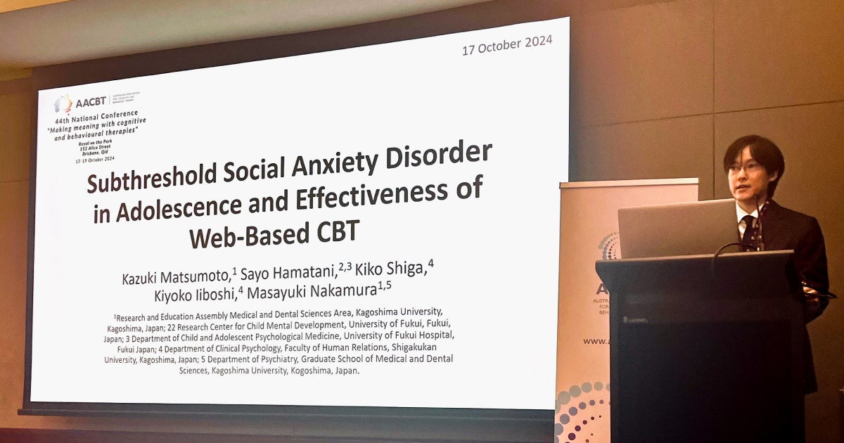 鹿児島大学を中心とした大学6校と高校1校による、「learningBOX」を活用した青年期の社会不安症のICBT(インターネット認知行動療法)自助プログラムの有効性を検証する研究が、海外のアワード「Bett Asia Awards 2024」にてウェルビーイング賞のファイナリストにノミネート
