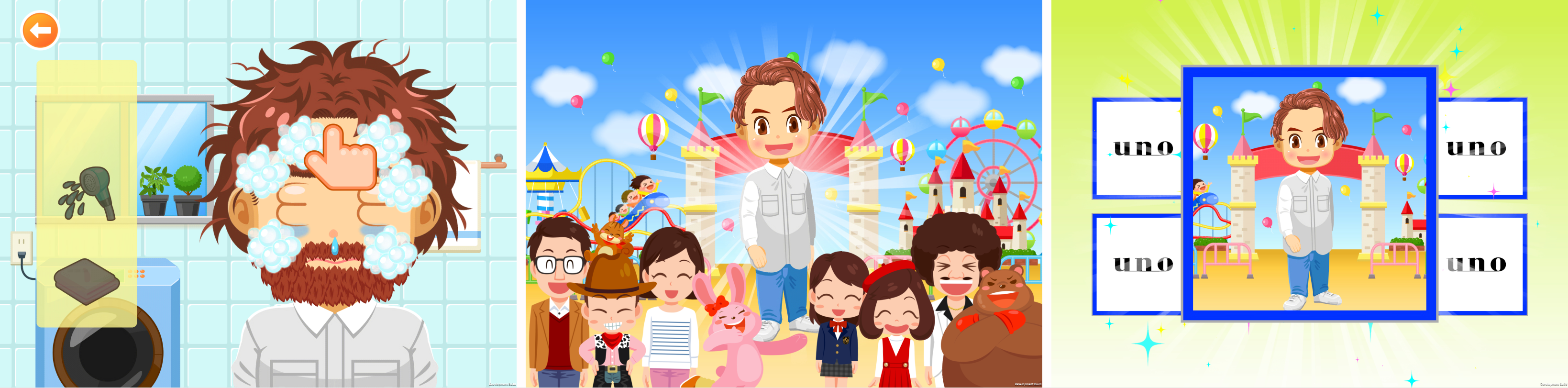 朝目覚めてから、お出かけするまでの身じたくを楽しく体験できるゲームです。3人のキャラクターから選択でき、洗顔、ひげそり、スキンケア、ヘアスタイリングなどを行い、身なりを整えます。アイテムを使用して顔を洗ったり、髭を整えたり、複数のヘアスタイルや眉毛の形の中から自分が好きなものを選ぶことができます。身なりが整ったら、お出かけし、写真撮影をします。撮影した写真は「おしゃれずかん」に保存されます(保存枚数は最大8枚)。