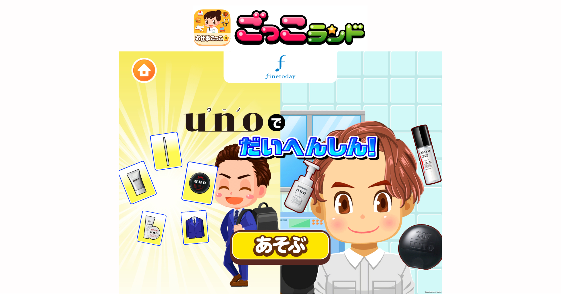 今回、朝目覚めてからお出かけするまでの毎日の身じたくや 、スキンケア・メイク・ヘアスタイリングなどのセルフケアの楽しさを子どもたちに知っていただきたいという想いから、ファイントゥデイ資生堂が展開するメンズブランド「uno(ウーノ)」での『ごっこランド』への出店が実現しました。