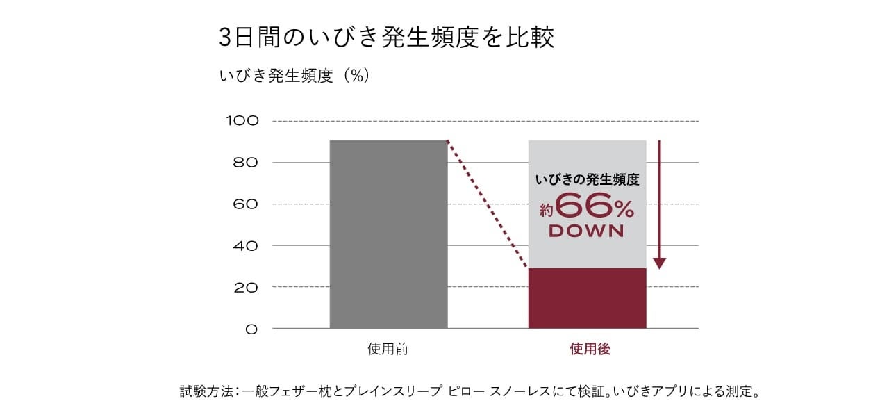 3日間の検証で最大66%のいびき軽減を確認することができました。
