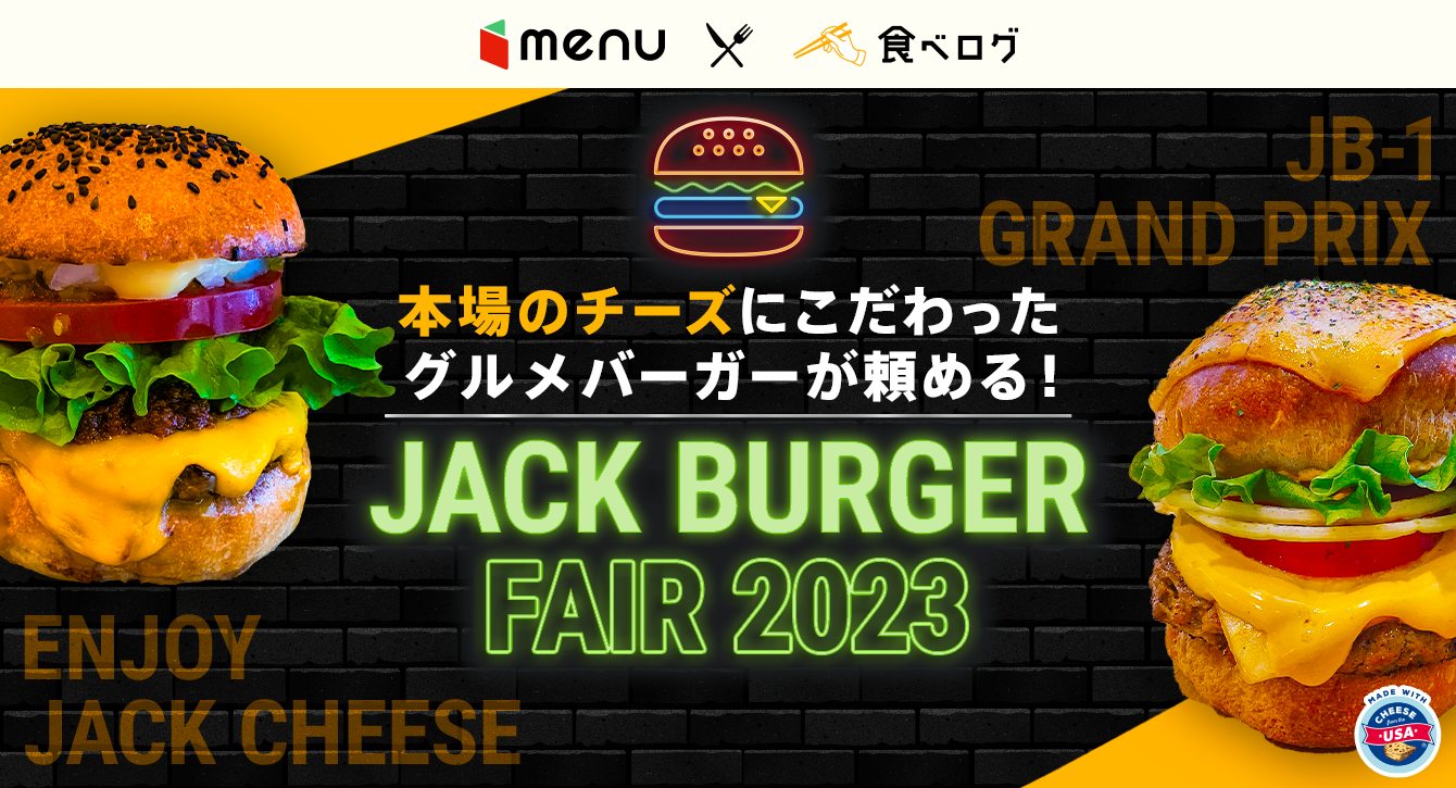 menuで注文いただける「JACK BURGER FAIR 2023」の参加店舗を一挙ご紹介します。アメリカ産ジャックチーズをたっぷり使ったハンバーガーから推しバーガーをぜひ見つけてください。 ※写真はイメージです