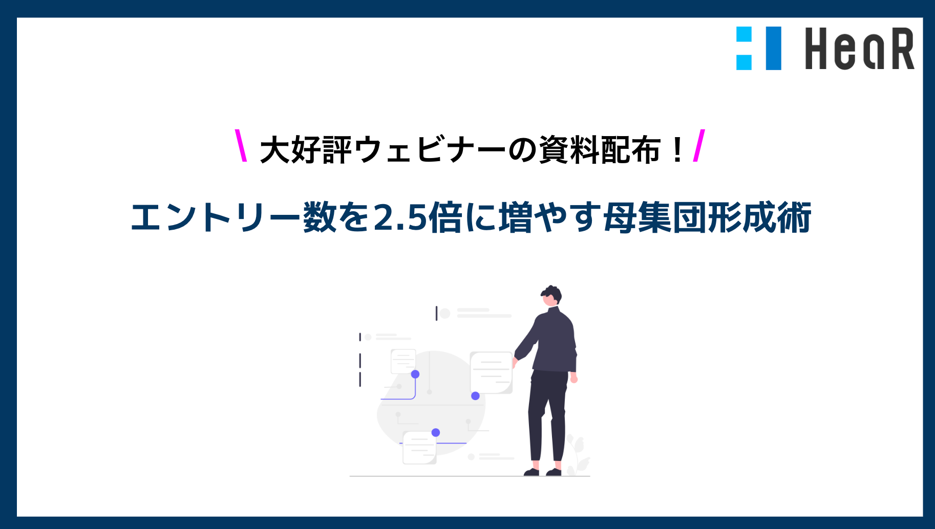 そこでHeaR株式会社が先週実施した「成功事例から学ぶ!エントリー数を2.5倍に増やす母集団形成術とは?」に関する資料を配布します!