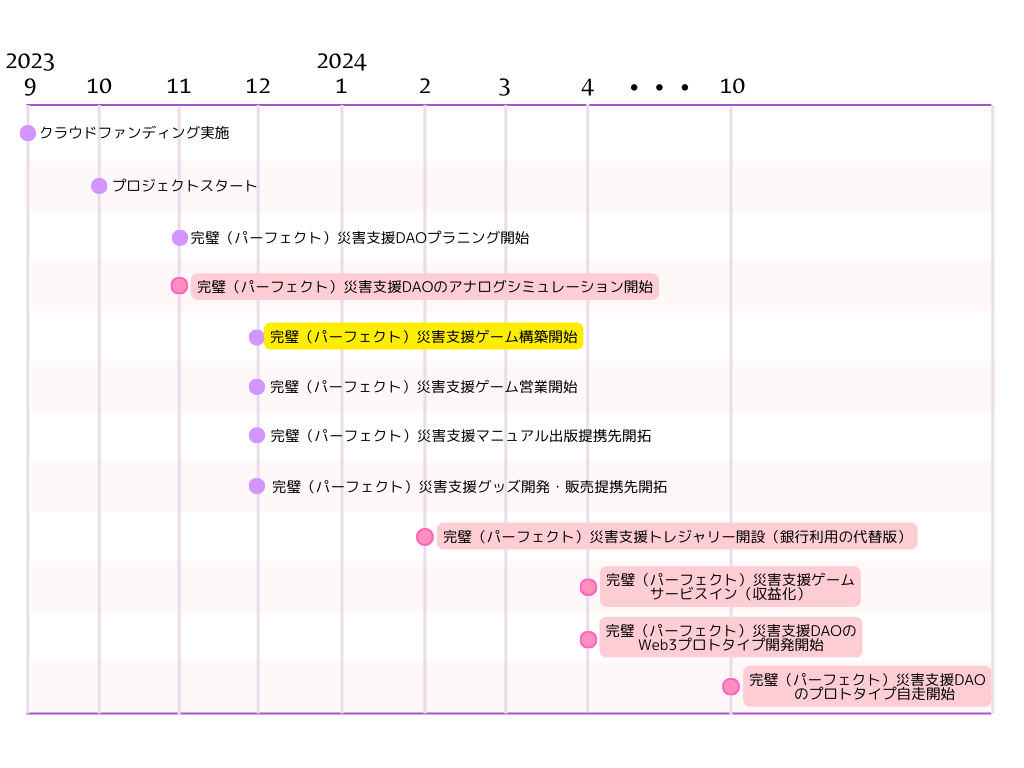 「完璧(パーフェクト)災害支援DAO」のマイルストーン
