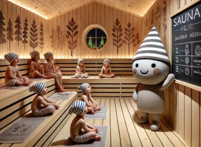 子ども専用のミニサウナ「サウナ幼稚園」では、トントゥ先生がサウナでのマナーや楽しみ方を優しくレクチャーしてくれます。