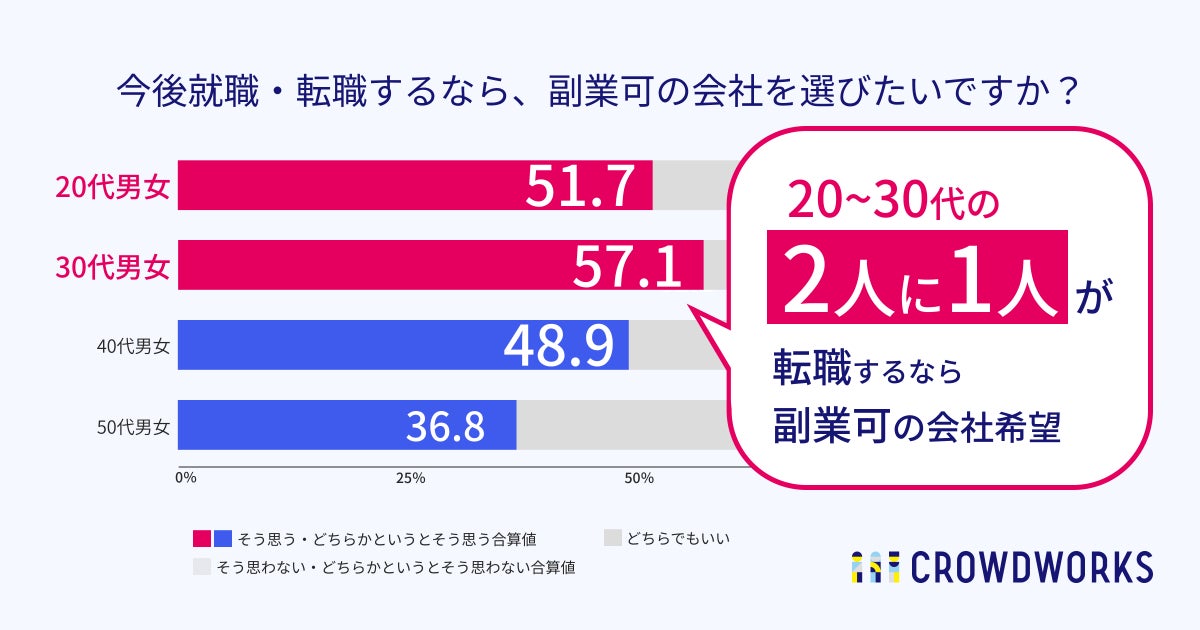 本業をもつ20~50代の現役ビジネスパーソンの2人に1人が「転職するなら副業可の会社」を希望