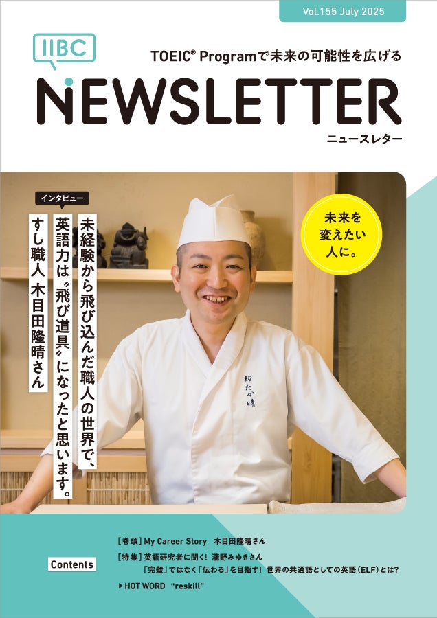 日本でTOEIC Programを実施・運営する国際ビジネスコミュニケーション協会(IIBC)(所在地:東京都中野区中野、理事長:藤沢裕厚)は、広報誌『IIBC NEWSLETTER Vol.155』を発行しました。