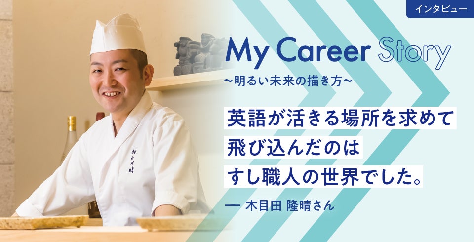 大学卒業後、料理未経験からすし職人の道へ進んだ木目田隆晴さん。英語がときにチャンスをつくり、キャリアの”飛び道具”にもなったと振り返ります。