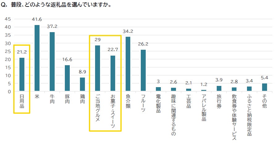 福知山市の返礼品のうち人気カテゴリである「日用品」や「ご当地スイーツ」へも関心が高い。
