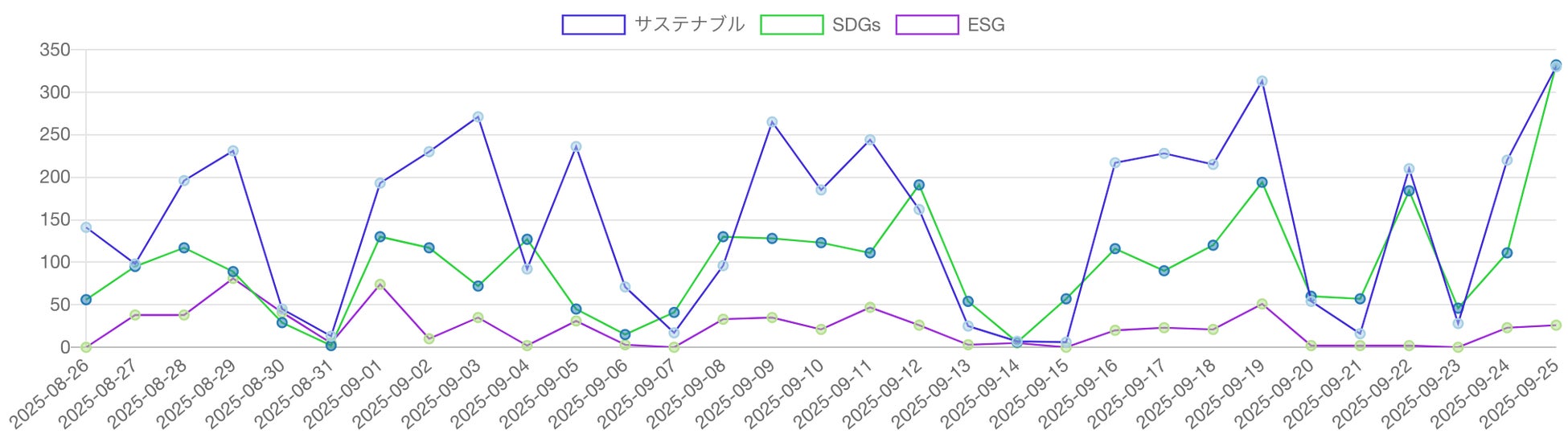 株式会社トドオナダ(代表取締役社長 松本泰行)は、2025年8月26日〜9月25日までのSDGs・ESG・サステナビリティに関するウェブニュースについて調査・分析いたしました。4,000以上のWEBメディアをモニタリングできるPR効果測定サービス「Qlipper」( https://qlipper.jp/ )のデータに基づいた調査結果です。