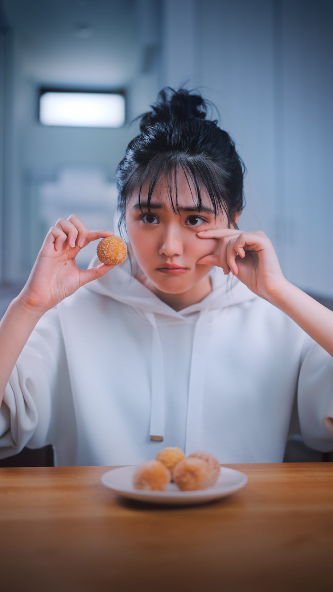 うどんから生まれた「丸亀うどーなつ」のもっちもちな食感に「もっちもちがとまらない!」原さんの表情豊かな姿をお楽しみください。