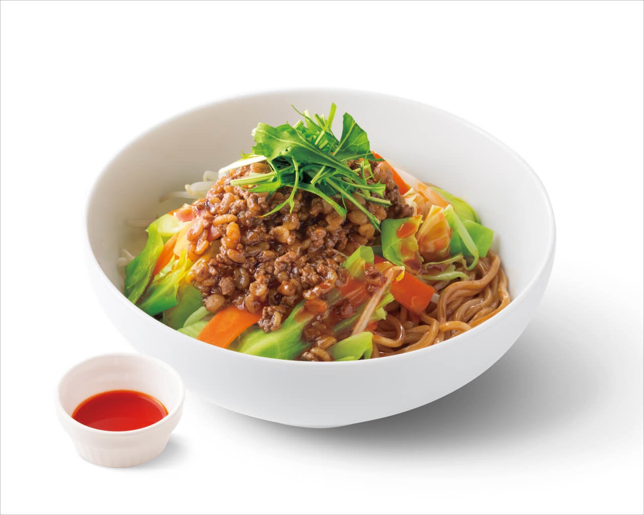 ピリ辛の肉みそが太めの麺によく絡みます。お好みで花椒オイルをかけてお召し上がりください。※一部店舗では販売しておりません。