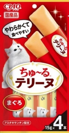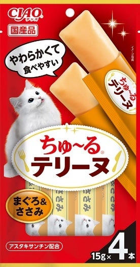 いなばペットフード株式会社(いなば食品グループ 本社:静岡県静岡市清水区由比)は、猫ちゃん用「CIAOちゅ~るテリーヌ」を新発売いたしました。液状のちゅ~るをこぼれにくく食べやすいテリーヌタイプにしたもので、わんちゃん用の「ちゅ~るテリーヌ」よりも少し柔らかい仕上がりです。