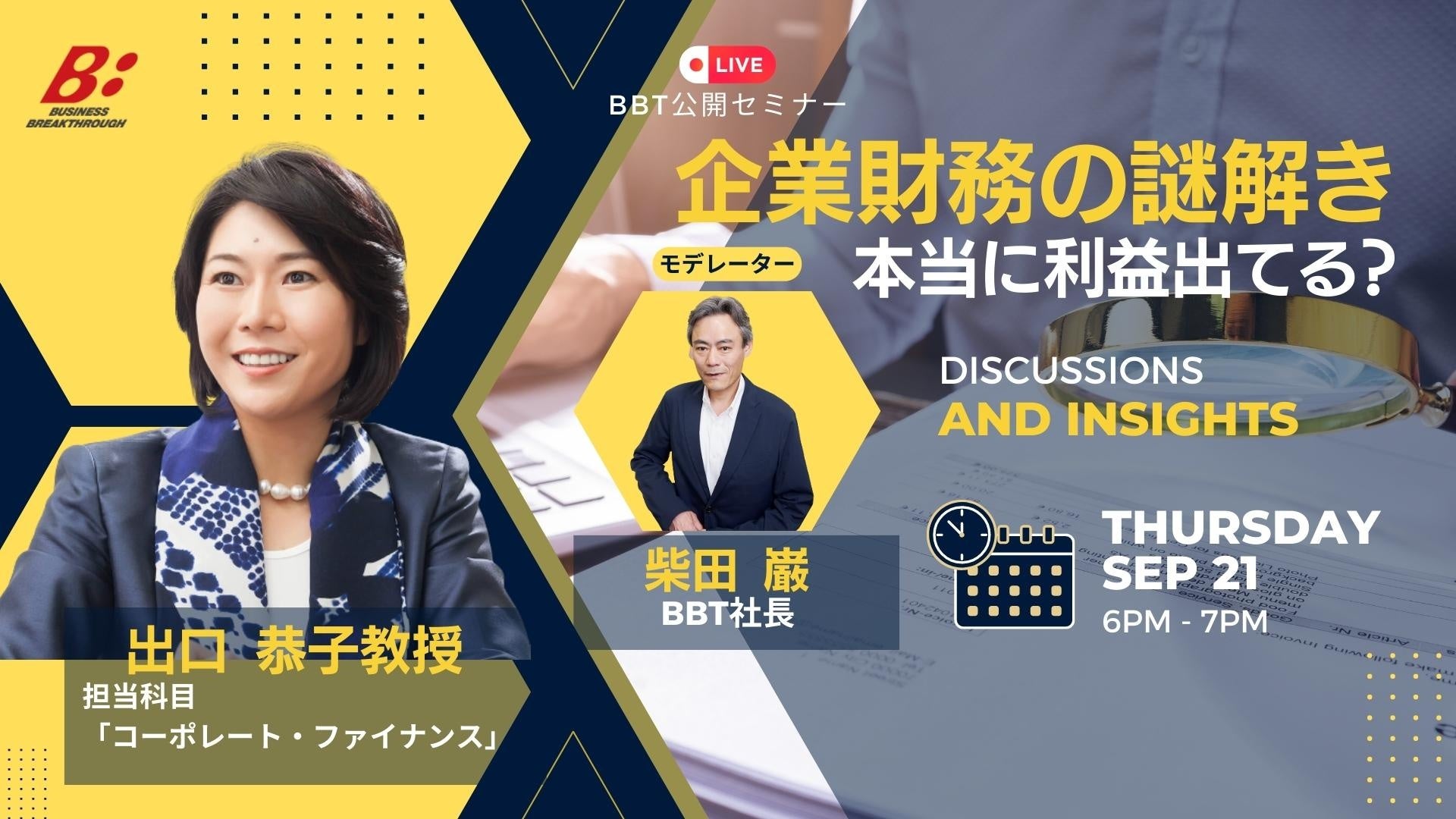 【BBT大学院、無料公開セミナー開催!】企業財務の謎解きー本当に利益出てる?