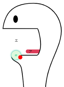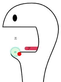 画像:発音学習の相棒リンゴ。音をリアルタイムで可視化して、音声(赤丸)で的を狙いつつ、正しい発音を身につけます。