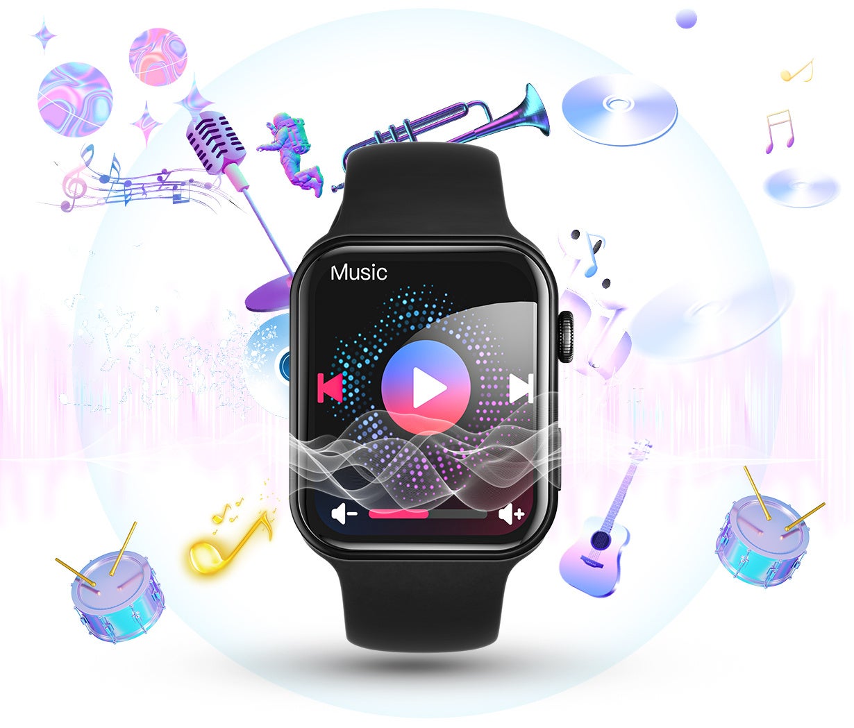 スマートウォッチで音楽の再生、一時停止、曲送り、曲戻し、音量調整などの操作ができます。