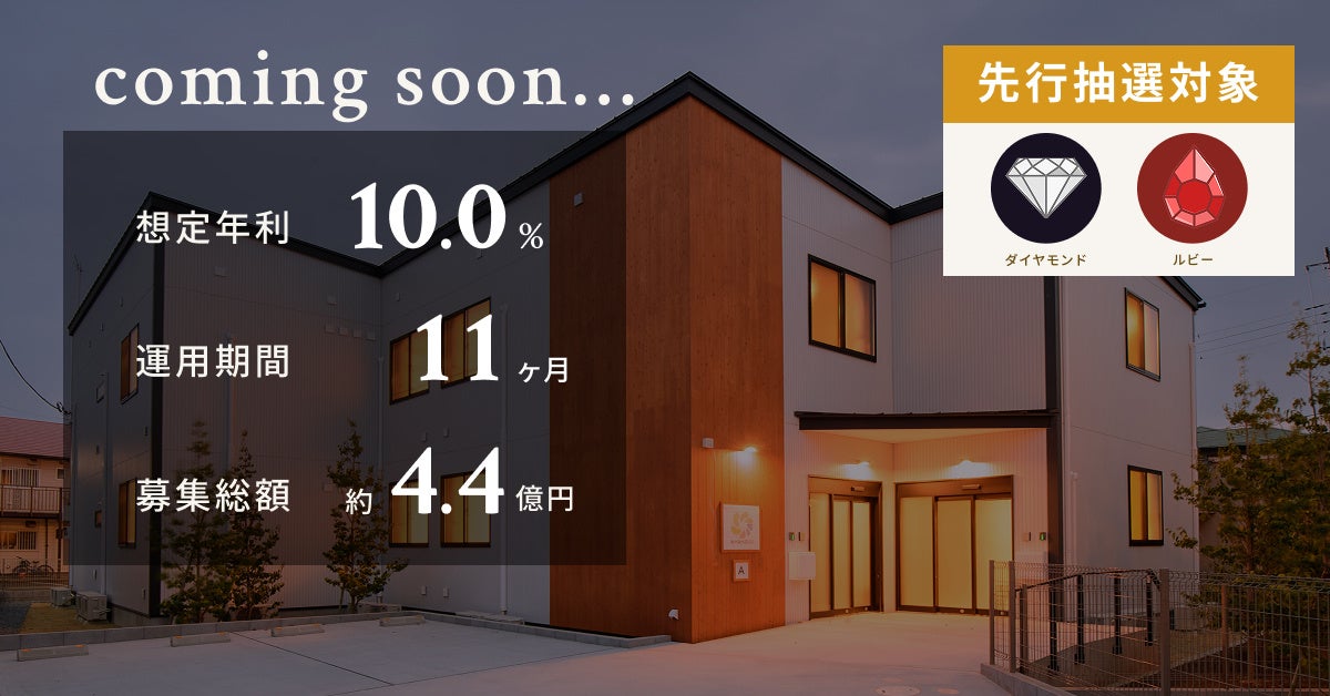 このたび、新たにTECROWD84号ファンド「障がい者グループホーム AMANEKU葛飾西水元」の先行情報を公開しました。想定年利10.0%、運用期間11ヶ月、国内キャピタルゲイン型ファンドとなります。