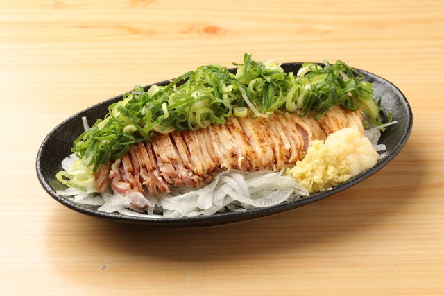 親鶏のもも肉1枚を炙り焼き、特製ポン酢ダレと葱でさっぱりと仕上げました。