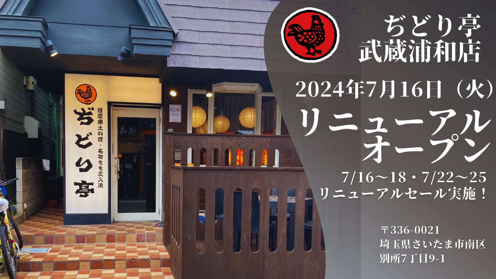 ≪リニューアルオープン≫「ぢどり亭」武蔵浦和店、リニューアルオープン!<7月16日(火)>