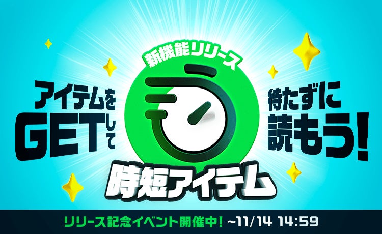 【LINEマンガ】アイテムをGETして待たずに読もう!毎日無料のチャージ時間を短縮できる新機能「時短アイテム」登場