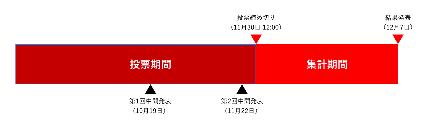 各メンバーの下に設置されている「ツイートして応援」ボタンをクリックしてツイートを投稿することでもポイントが加算されます。1ツイート1pt加算されます。