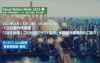 株式会社日立製作所(以下、日立)は、3月14日(火)から16日(木)までの3日間開催される、@IT編集部主催のオンラインセミナー「Cloud Native Week 2023 春 目的と手段を見直そう~今一度立ち返る、学びの春~」にて講演します。