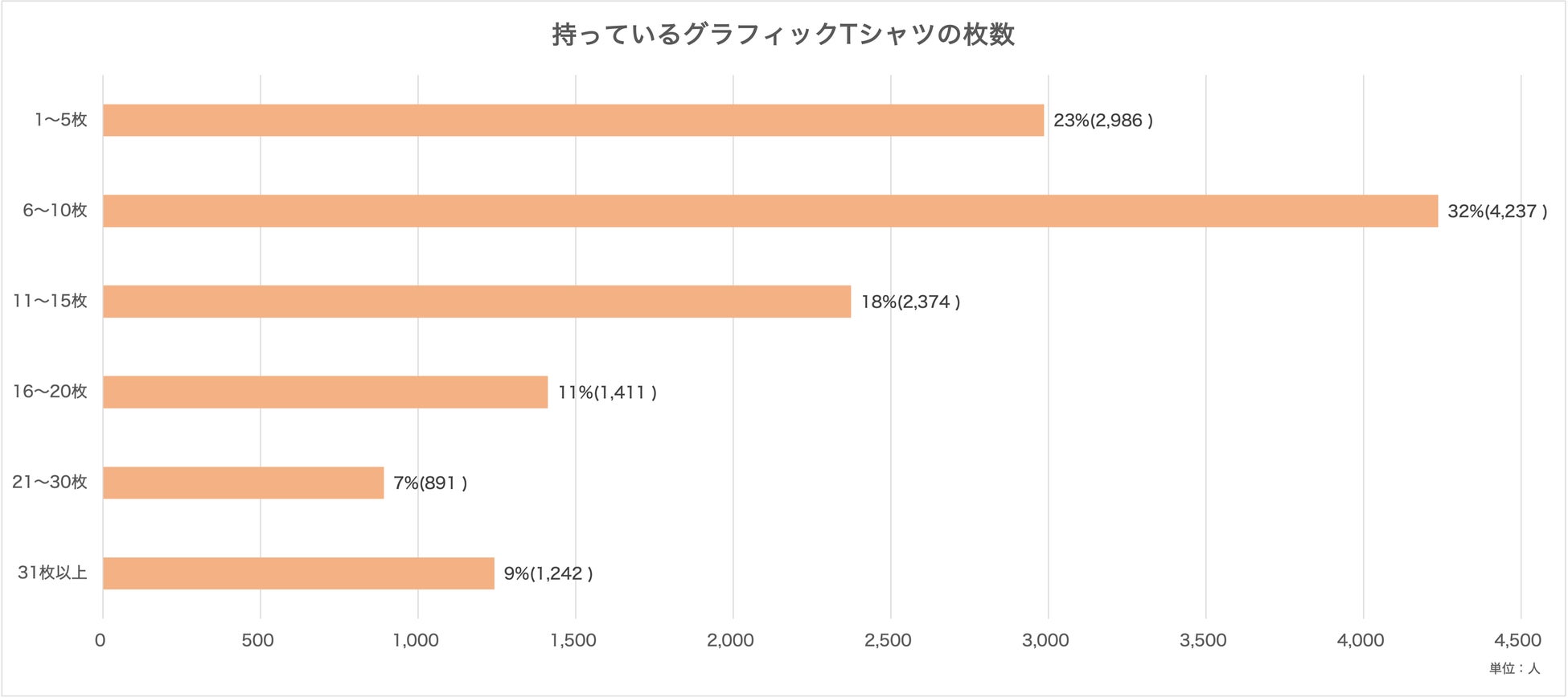 Q2. あなたはグラフィックTシャツ(無地以外のTシャツ、ワンポイントも含む/半袖・長袖問わず)を何枚持っていますか?