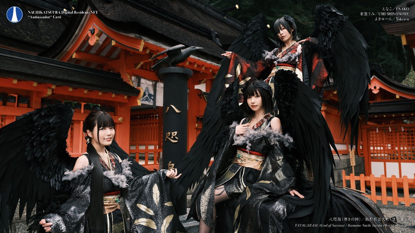 人気コスプレイヤーが各地域にちなんだ「地域共創衣装」で登場し、各地域の寺社にて祈祷の上で提供する『デジタル住民NFTアンバサダーカード』を、和歌山県那智勝浦町を皮切りに、11月15日(金)から順次、日本最大級のNFTマーケットプレイス「HEXA」(運営会社;メディアエクイティ株式会社、東京都品川区、代表取締役:椛島誠一郎)にて募集開始いたします。