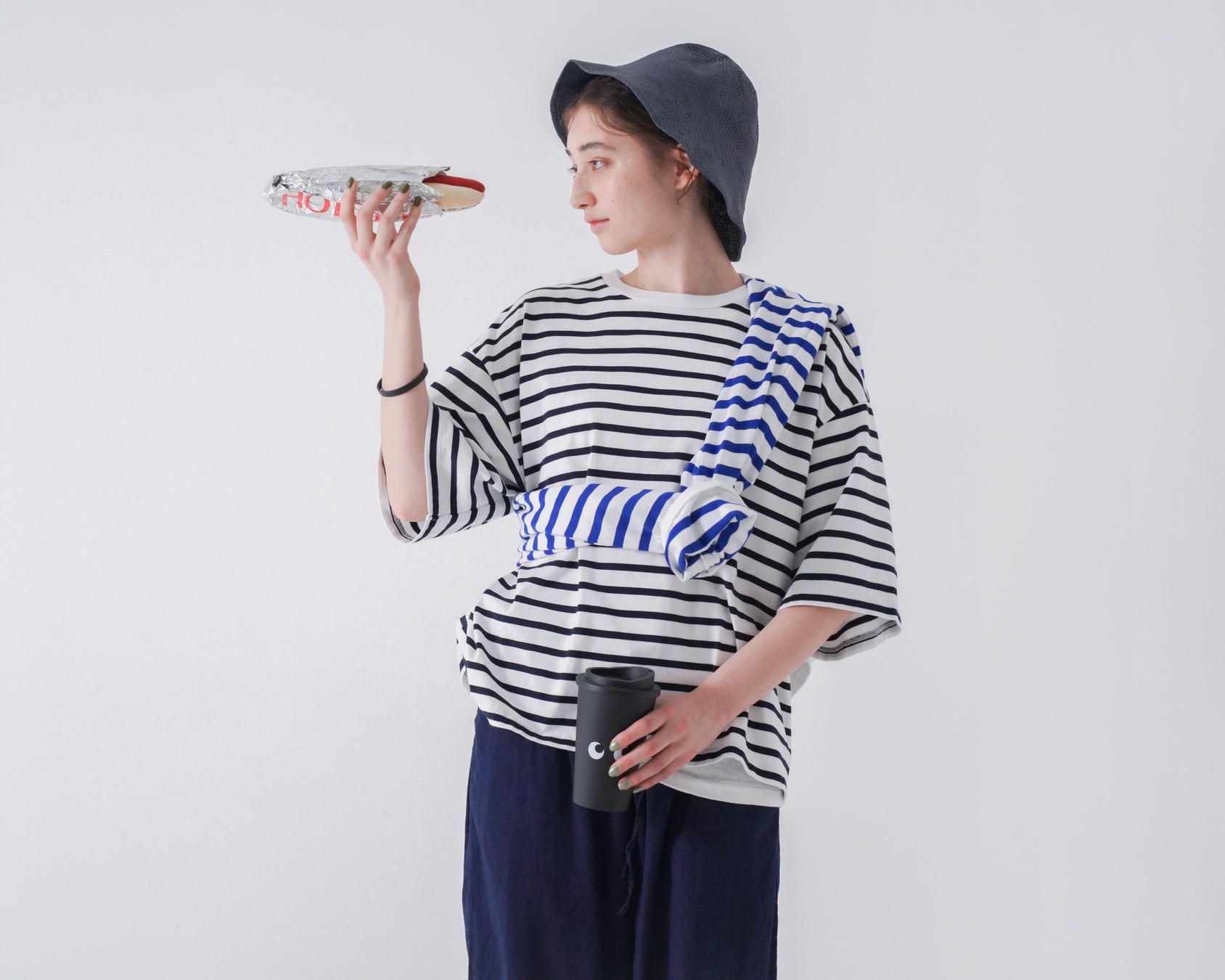 [ no.03 ] UpcycleLino BASIC 天竺ボーダーバスクTシャツ(ユニセックス)/14,300yen