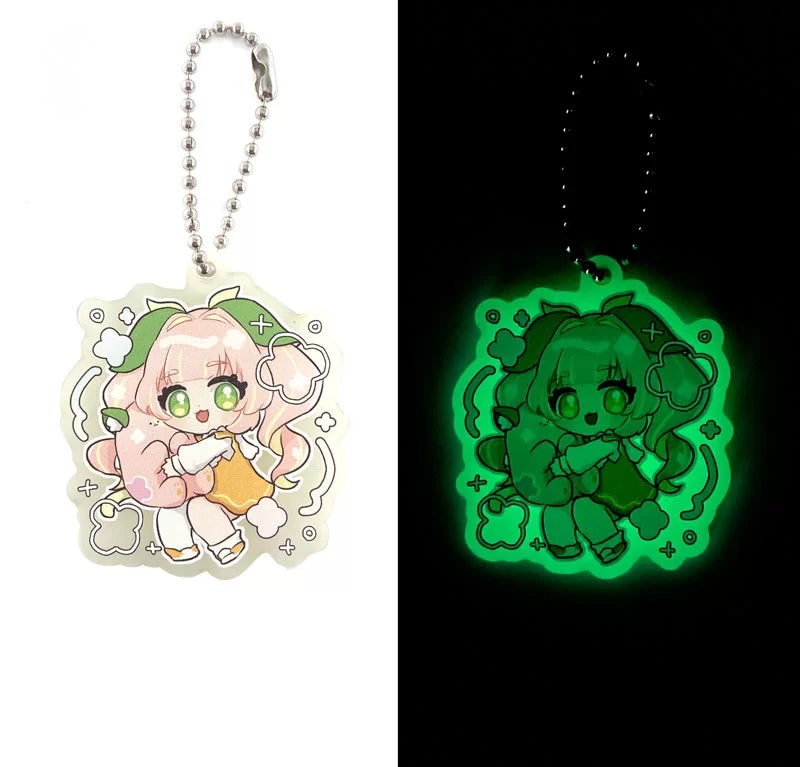 暗い場所で存在感を発揮!オリジナルデザインが作れる蓄光アクリルキーホルダーで、あなただけのアイテムを楽しもう。