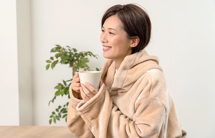 サッと羽織るだけですぐ温かい「着る毛布」。