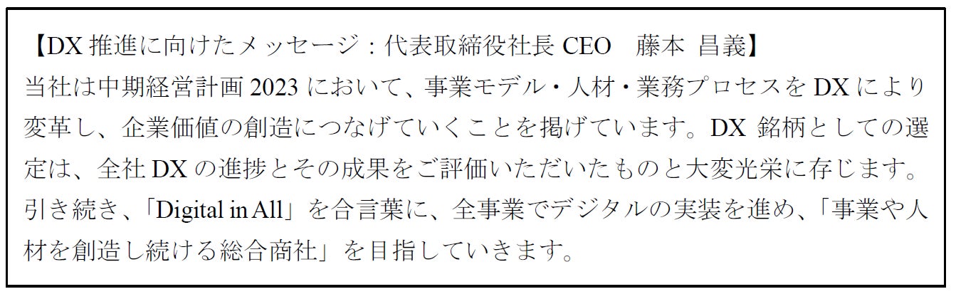 双日は今後も、「Digital in All」を合言葉に、全事業にデジタルの実装を進め、企業価値の向上に努めていきます。