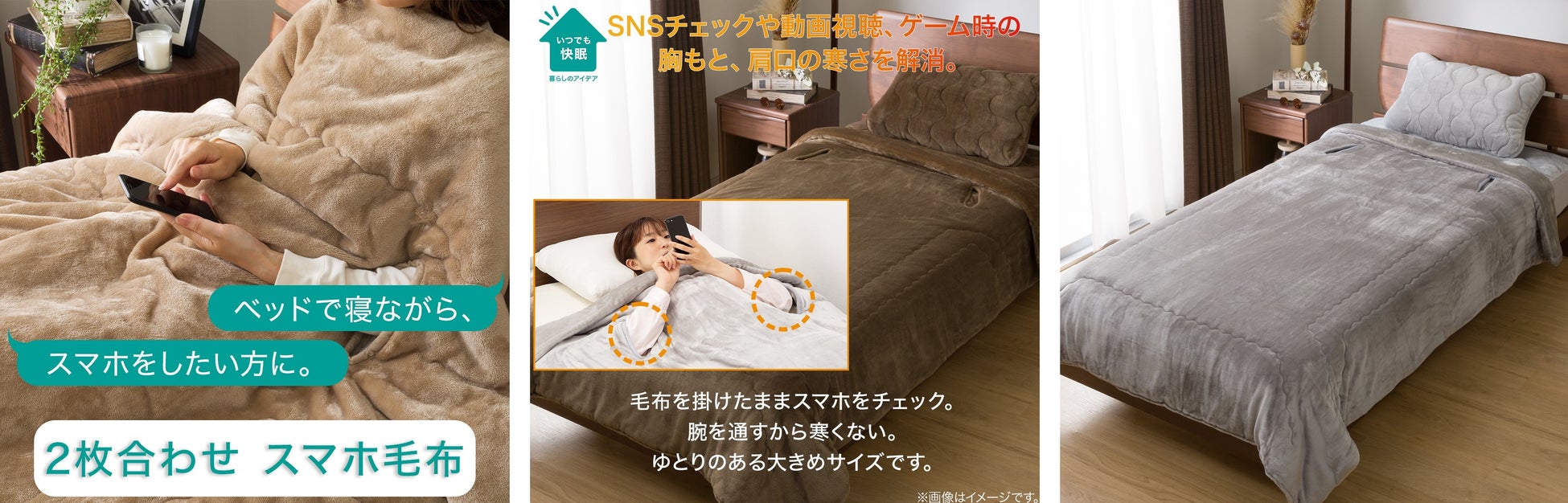 ・2枚合わせ スマホ毛布 シングル ※3タイプをご用意