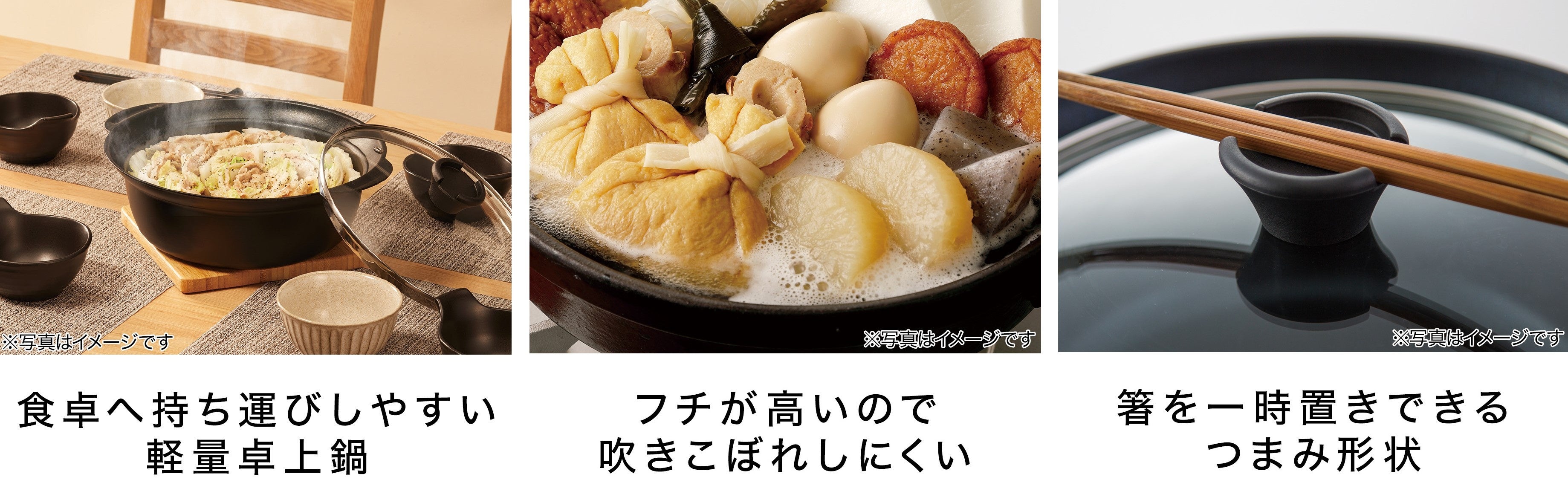 ・ふきこぼれにくい卓上鍋 ビミ(ガス火・IH対応) 期間限定お試し価格1,390円~(16㎝)