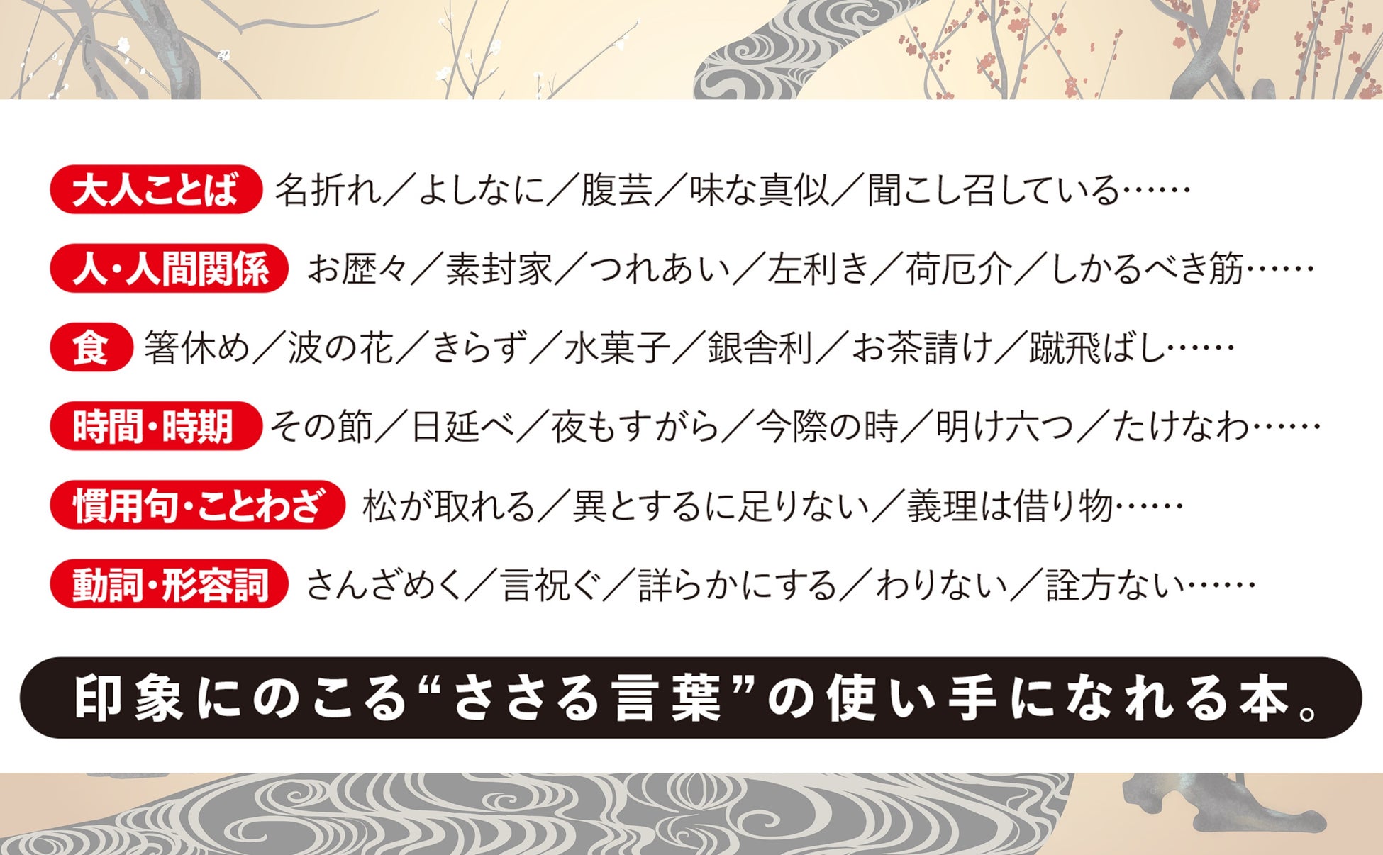 本書は、令和の時代に残したい懐かしくてしみる日本語を集めた一冊。いまこそ使いたい”ささることば”の実用辞典です。