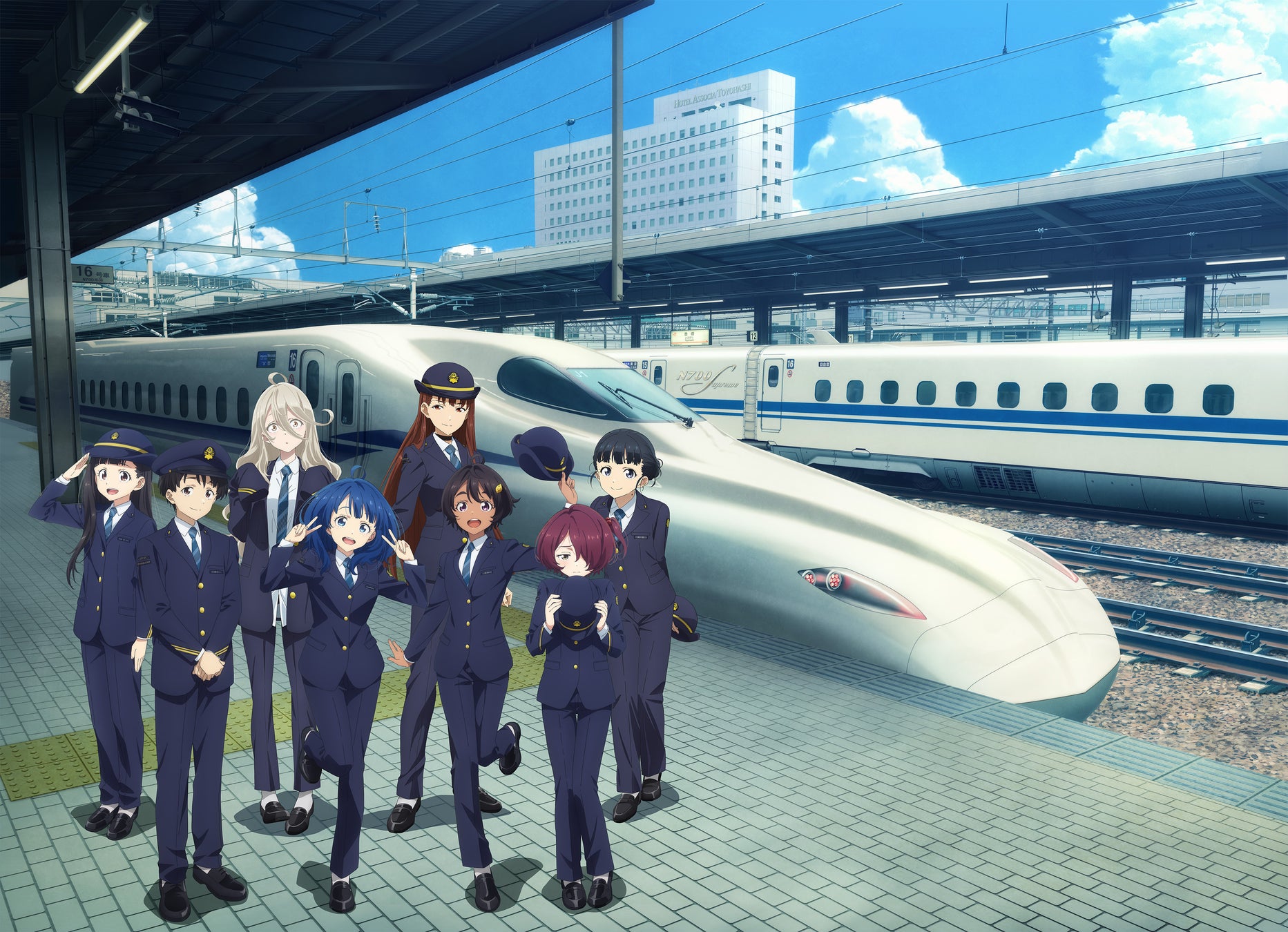 ◆JR東海制服を着用したキャラクター達8名のキービジュアル壁面パネル