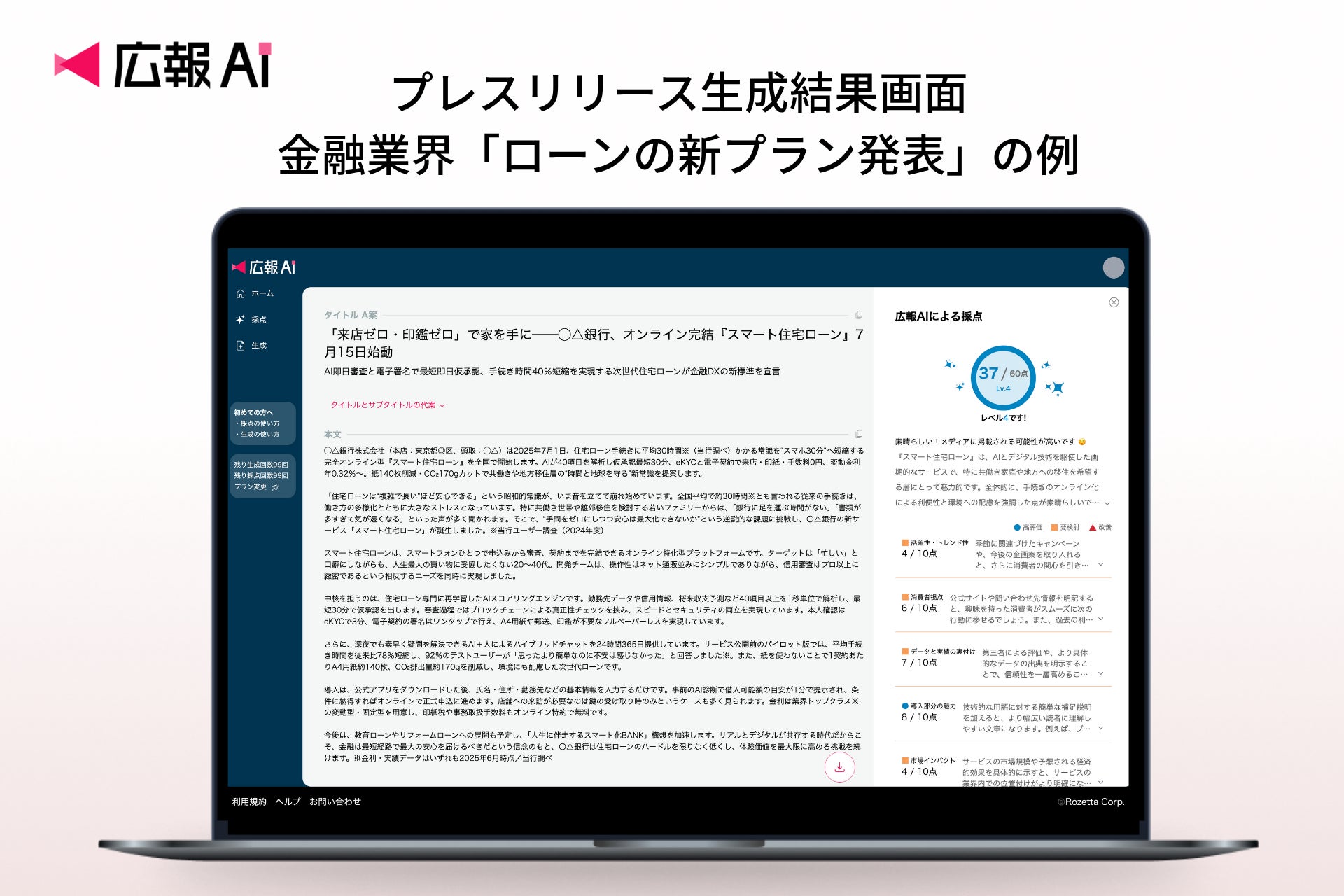 メタリアル・グループの株式会社ロゼッタ(本社:東京都千代田区、代表取締役:五石 順一)が提供する、メディアに掲載されやすいプレスリリースを生成・採点可能な『広報AI』が、金融業界のプレスリリース作成に対応しました。誤解や信用リスクに直結しかねない金融広報において、読み手に伝わる言葉で正しく情報を届けるためのAIサポートを実現します。